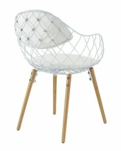 - Design details: There comes a time when a person just needs a basket to sit in. Basket conveys that open-wire effect to perfection with a minimalist chair that is maximal on style. Suitable for indoor or outdoor use, Basket is made with a powder coated white metal frame and soft vinyl cushion and backrest that provides surprising comfort. Perfect for patios, backyards, kitchens or dining areas, Basket comes fully assembled and is as contemporary as it gets.