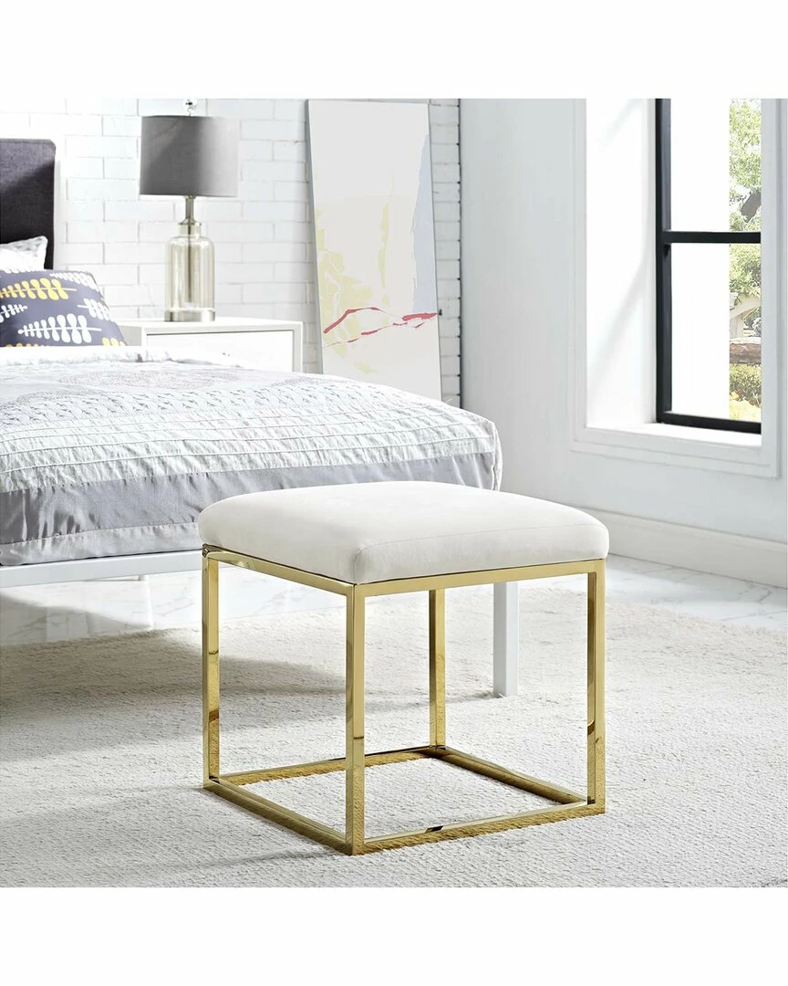 - Design details: Make a statement with Anticipate. Brimming with clean lines and a sleek modern look, Anticipate features a polished stainless steel base, elegant velvet polyester fabric top, and non-marking foot caps that help protect your flooring. The perfect addition to your bedroom, living space or entryway, Anticipate is a versatile ottoman that combines comfort and style with a supportive seat cushion and weight capacity up to 265 lbs. No assembly required.