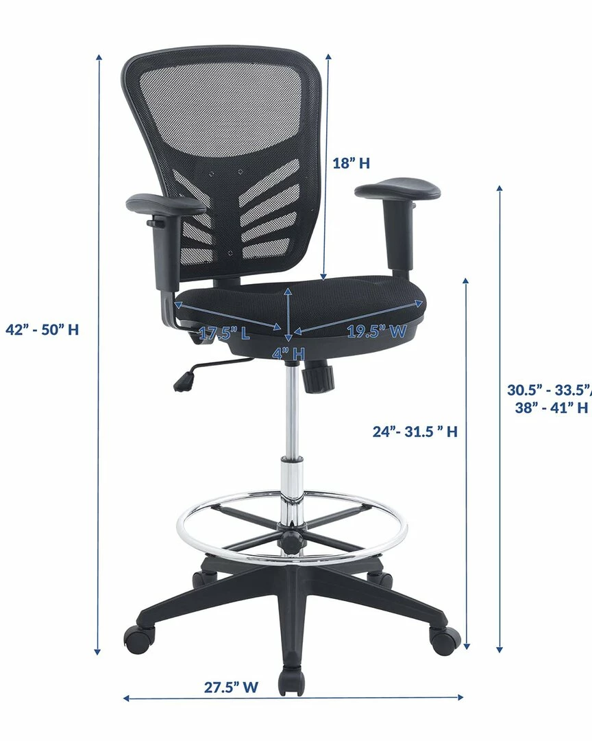 - Design details: Mark a turning point in your office tasks with the Articulate Drafting Stool in Mesh. Articulate makes it easy to relax into work with breathable mesh back and comfortable fabric cushion seat that serves as a simple extension to your everyday work ventures. This drafting stool installment of the Articulate series features height adjustable armrests, tilt tension control, an extra tall gas cylinder, and a sturdy chrome-plated steel foot ring to enhance posture. Fitted with five hooded dual-wheel casters, give yourself the ability to easily glide over carpeted floors while naturally performing tasks.