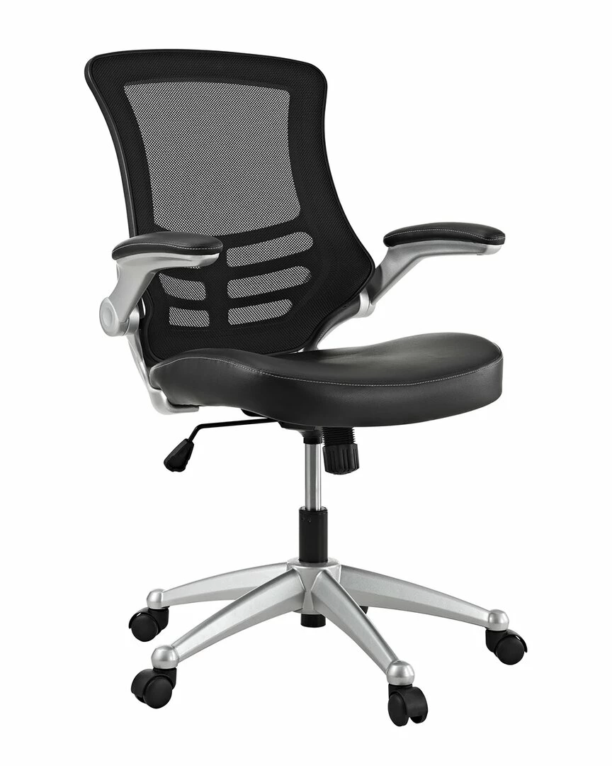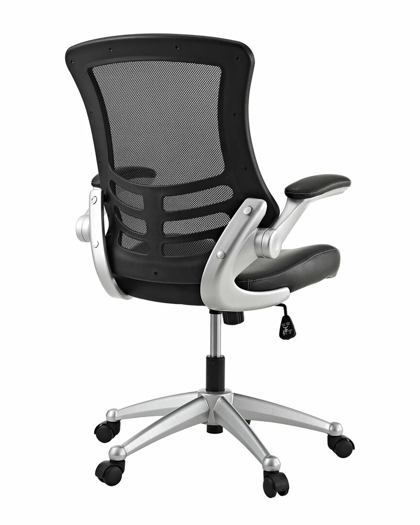 - Design details: Taking you where you need when you need it most. The Attainment Office Chair is a form-fitting ergonomic chair made from the most revolutionary advances in seating today. The breathable mesh back is curved to assist back and shoulder posture, while the lower frame provides exemplary lumbar support. With flip-up arms and a leatherette padded waterfall seat, enjoy your work from a place of comprehensive comfort.