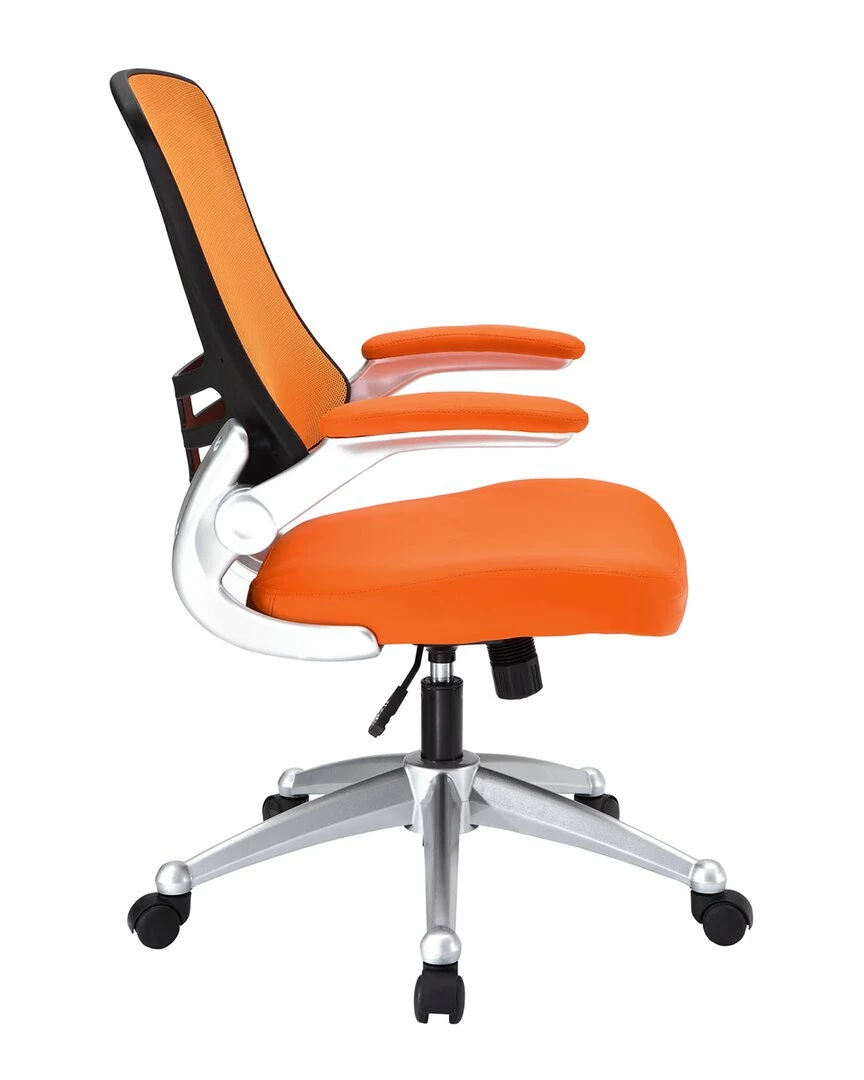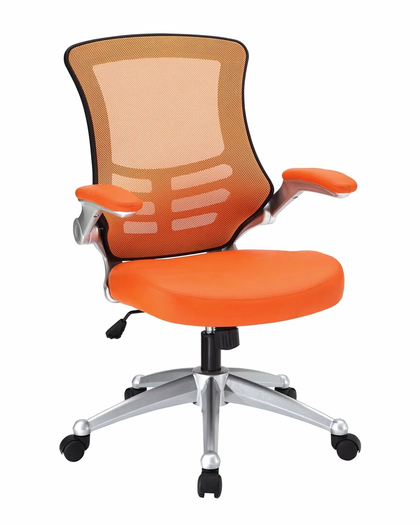 - Design details: Taking you where you need when you need it most. The Attainment Office Chair is a form-fitting ergonomic chair made from the most revolutionary advances in seating today. The breathable mesh back is curved to assist back and shoulder posture, while the lower frame provides exemplary lumbar support. With flip-up arms and a leatherette padded waterfall seat, enjoy your work from a place of comprehensive comfort.