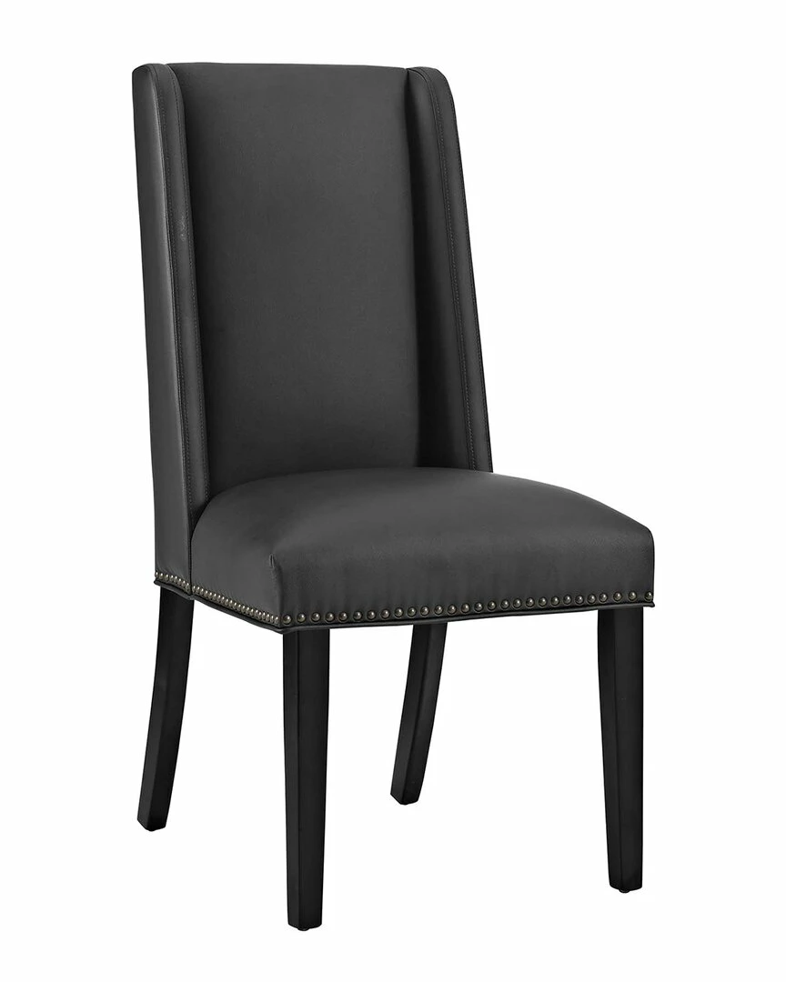 - Design details: Explore the vast riches of a treasured heritage with the Baron Dining Chair. Designed to resonate elegance, Barons features a charming back and antique copper nailhead trimmed seat with a dash of grace and noble appeal. Complete with dense foam padding, fine vinyl upholstery, solid wood frame and legs with non-marking foot glides, Baron is a stylish dining chair perfect for the modern home.
