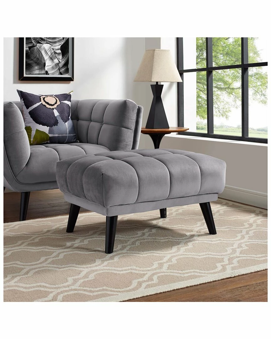 - Design details: Generously update your decor with Bestow. Uniquely designed with a striking broad profile, Bestow comes in soft, stain-resistant velvet polyester upholstery with dense foam padding and elegant button tufting. Sturdily positioned on splayed and tapered black finish wood legs with non-marking foot caps, Bestow boasts a bountiful living room seating design brimming with possibilities. With ample seat depth and overscaled frame, invite all your guests to sit comfortably in this 12″ high back and armrest collection perfect for mid-century, modern farmhouse, or contemporary decors.