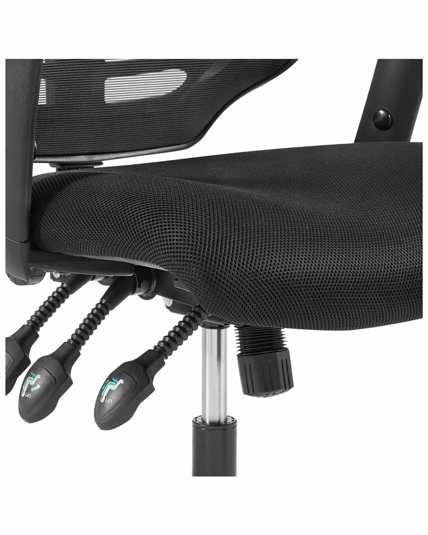 - Design details: Cruise through daily tasks with the Calibrate Office Chair. This sturdy nylon frame office chair features height adjustable armrests, a breathable mesh back with passive lumbar support, dense foam padded waterfall seat covered in mesh, full 360-degree swivel, and five dual-wheel casters for natural movement over either carpeted or hardwood surfaces. Experience productivity without compromising on comfort with this user-friendly work companion.