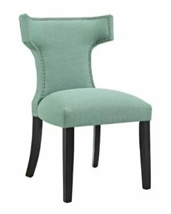- Design details: Transform your dining decor with the broadly designed Curve Dining Side Chair. Sweeping lines complement a minimalist shape for a chic look studded with nailhead trim. Curve comes generously padded with dense foam covered in polyester fabric, non-marking foot caps, and delivers just the right touch of finesse with tapered wood legs. Sporting an hourglass shape, Curve works well in a variety of dining room arrangements.