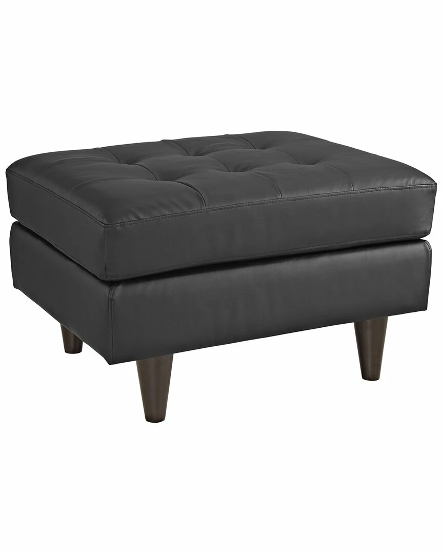 - Design details: Elevate your legs on the delightful aesthetics of the Empress mid-century style ottoman. Made to convey the pleasure of simple post-industrial design, Empress comes finely upholstered in leather with plush foam padding and stained hardwood legs. Empress combines a boxy design with artfully tapered legs for a piece that leaves you thankful that you can relax amidst such calming decor.