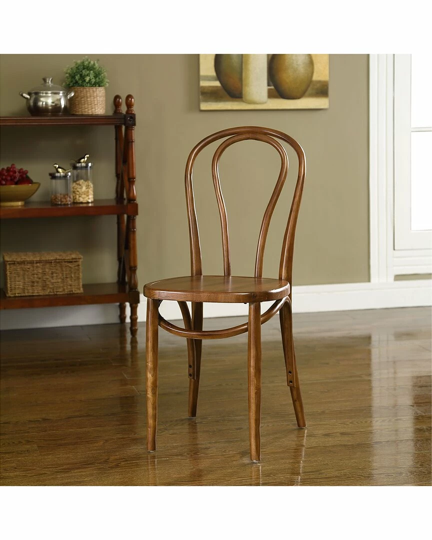 - Design details: Travel through periods of cultured appeal with the Eon Dining Chair. A vintage piece with a contemporary twist, Eon is made of solid Elm wood, a durable polyurethane finish, non-marking plastic foot glides, and does not require assembly. An Iconic chair with a design that spans the ages, Eon works well in industrial modern and vintage modern dining rooms, kitchens, cafes and restaurant seating areas.