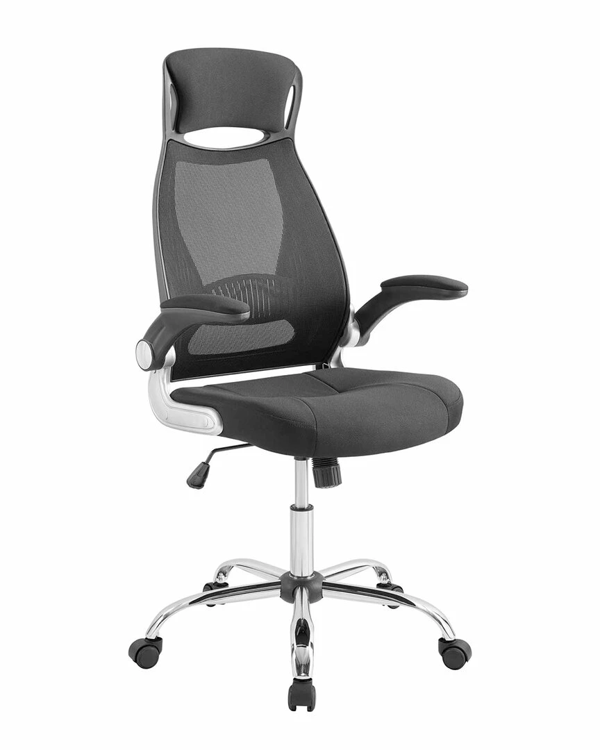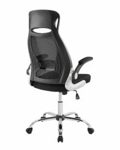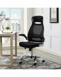 - Design details: Exhibit command potential with the Expedite Highback Office Chair. Expedites breathable mesh back is ergonomically designed to assist back and shoulder posture, while the lower portion provides excellent lumbar support. A padded mesh headrest completes the managerial look of this executive office chair, while padded flip-arms add to the versatility. Complete with a densely padded mesh seat, 360-degree swivel, one-touch pneumatic height adjustment, a tilt-tension control knob, and five hooded dual-wheel nylon casters on a chrome plated aluminum base, glide comfortably over carpeted floors while staying ready for the tasks at hand.