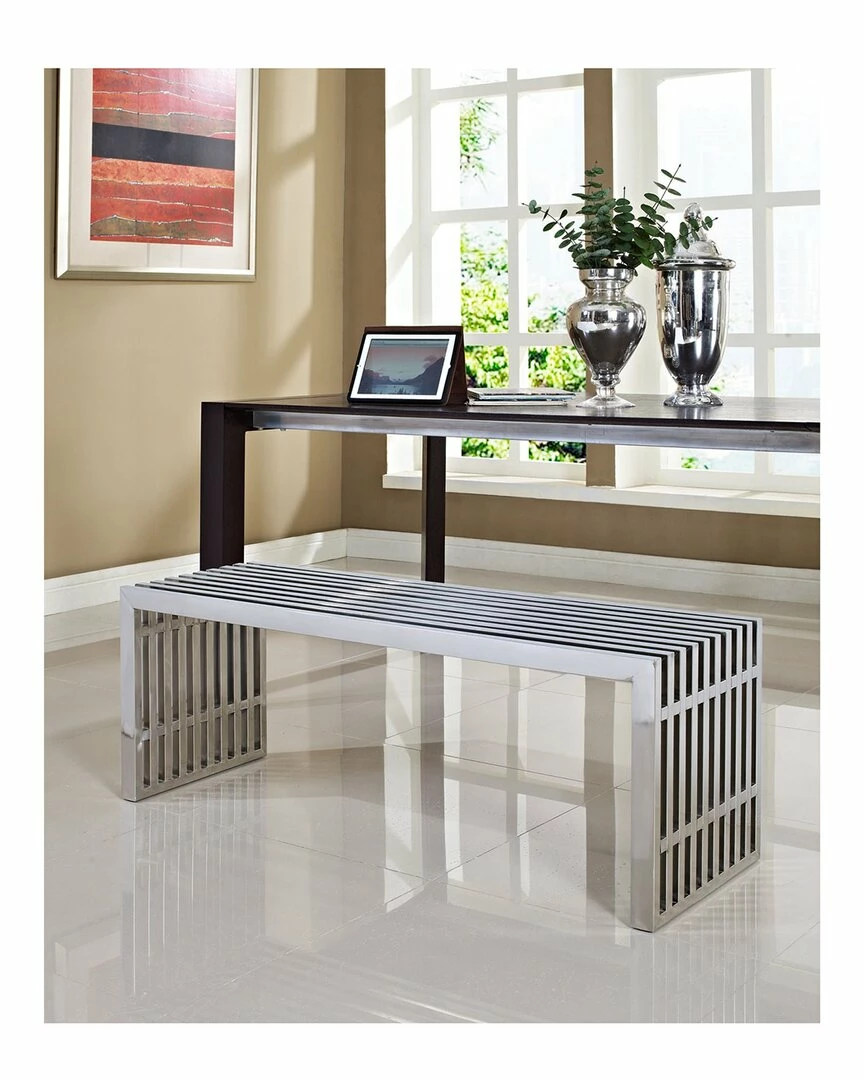 Modway Gridiron Medium Stainless Steel Bench Home Accent Chairs