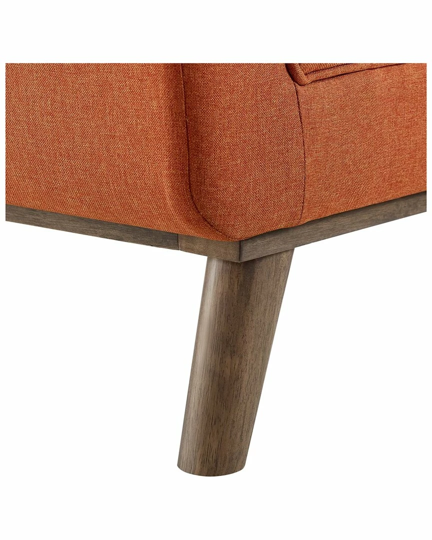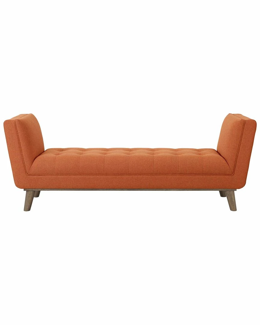 - Design details: Sail away with the Haven accent bench. Subtle piping blends with biscuit tufting adorn Haven’s generously sized seat with artistry and grace. Haven features dense foam padding covered by soft polyester fabric upholstery for premium seating comfort. Organically flared arms rise from this mid-century accent bench to enhance the decor of your living room, lounge area, bedroom, entryway, or home office. Haven’s sturdy rubberwood frame can support up to 800 lbs and rests securely on four splayed wooden legs.