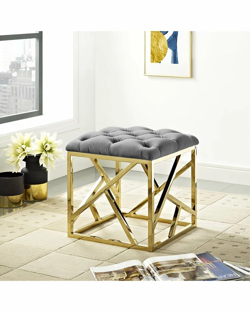 - Design details: Beautify your decor with the Intersperse Ottoman. Boasting a captivating design, Intersperse features a polished stainless steel base, a luxuriously tufted velvet polyester fabric top with elegantly tufted buttons, and non-marking footpads that help protect your flooring. A welcome addition to the modern bedroom or living space, Intersperse combines comfort and style with a supportive seat cushion and weight capacity up to 331 lbs. No assembly required.