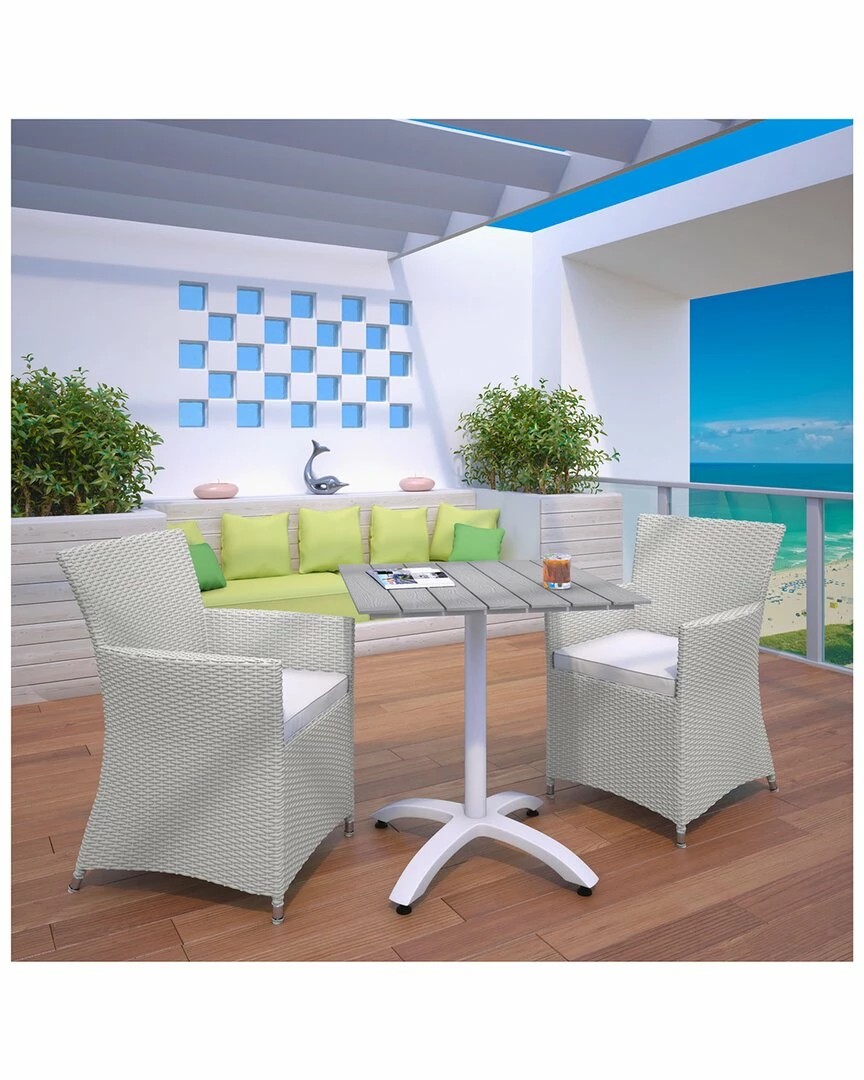 Modway Junction 3pc Outdoor Patio Wicker Rattan Dining Set Home Dining Sets