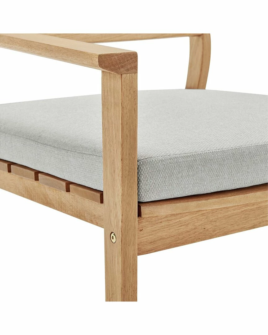 - Blend the innovative charm of rustic accents and lakeside cabin style with the Breton Outdoor Patio Wood Armchair. Solidly constructed with FSC Certified ash wood, Breton is a versatile patio armchair designed to stand out in any outdoor decor. Crisp lines highlight the subtle bowed frame and slatted seat that flow smoothly into the four tapered legs of this organic piece. Enhance your patio, porch, poolside, or deck with the Breton Outdoor Patio Armchair. Chair Weight Capacity: 331 lbs.