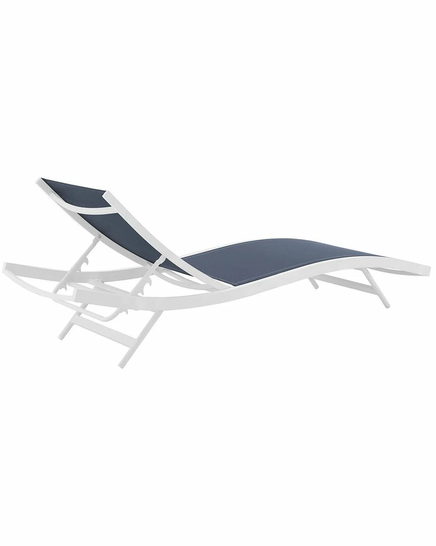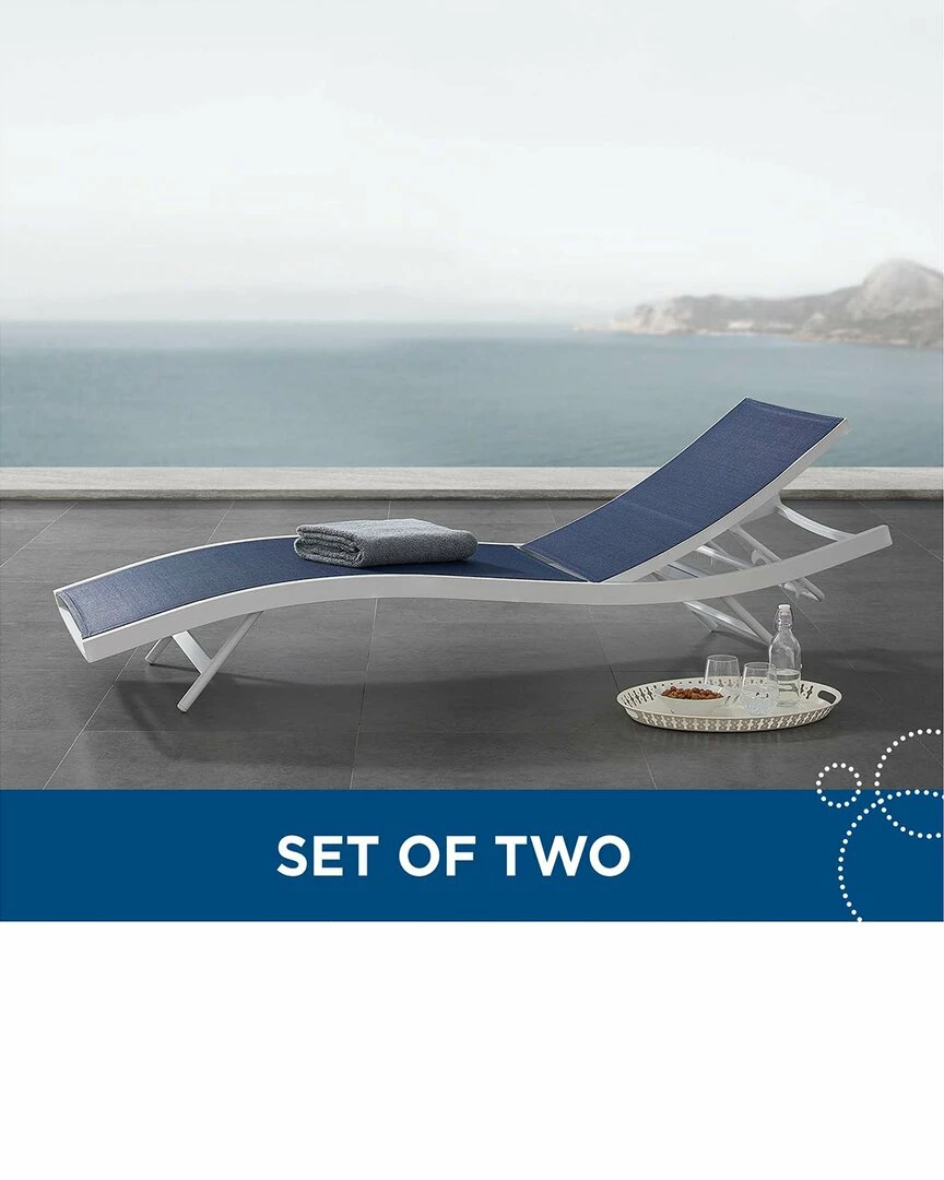 - Enjoy warm sunshine and serene relaxation with the Glimpse Outdoor Patio Chaise Lounge Chair Set of 2. A contemporary update to your outdoor living space, Glimpse comes with a breathable Textilene mesh seat for ergonomic comfort and support, a long-lasting, powder-coated aluminum frame, and non-marking foot caps. Sit back and relax as you choose from four height adjustable recline positions. Perfect for the backyard, patio, or poolside, this outdoor lounger features sweeping lines, splayed legs, and a fresh, modern aesthetic.