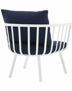 - Refresh your outdoor decor with the Riverside Outdoor Patio Aluminum Armchair. Defined by a crisp, coastal style, this installment of the Riverside outdoor sectional sofa furniture collection features an open barrel back design, sleek armrests, splayed legs, and plush 4″ thick all-weather UV-resistant fabric cushions. Solidly constructed with a powder-coated aluminum frame, the Riverside outdoor chair will enhance the look of your patio, backyard, balcony, porch, deck, or poolside area. Includes foot caps. Chair Weight Capacity: 300 lbs