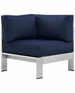- Enjoy your patio or backyard leisure time with the strong and durable Shore Outdoor Patio Corner Arm Chair. Made with an anodized brushed aluminum frame and non-marking black plastic foot caps, this outdoor deck chair comes outfitted with resilient fabric canvas tested to last through all weather conditions. The Shore Outdoor Corner Armchair complements your casual gatherings with a look and functionality you can rely on.