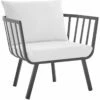 - Gather family and friends for pleasant weather and good conversation with the Stance Outdoor Collection. Boasting a contemporary modern look, Stance features woven polyester fabric rope seat back and flared powder-coated aluminum frame, and waterproof all-weather fabric cushions with plush 5″ thick, dense foam padding provide a relaxing spot to lounge. A versatile set designed for long-lasting durability, each piece in the Stance Collection can be mixed and matched and effortlessly arranged to fit the spontaneous needs of you and your guests. Cushion Thickness: 5″H. Chair Weight Capacity: 331 lbs. / Sofa Weight Capacity: 551 lbs.