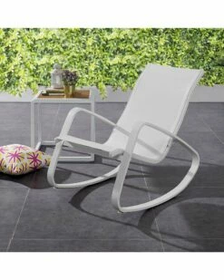 - A contemporary update to outdoor lounging, Traveler Rocking Mesh Sling Lounge Chair comes with an ergonomic all-weather Textilene mesh sling seat and long-lasting powder-coated aluminum frame. Traveler Rocking Lounge Chair features sleek rounded armrests, plastic foot caps to help protect hardwood patio flooring, and a fresh, modern aesthetic, that complete the look of this stylish outdoor lounge chair. Enjoy calm, rocking movement while relaxing next to the pool, garden, patio, or deck. Chair Weight Capacity: 331 lbs.