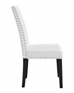 - Design details: Wrap up moments of quality seating with the Parcel dining chair. Finely upholstered in faux leather with a nail-head trim, Parcel delivers a concise offering that enhances the dining experience in a subtle and unassuming way. Padded with dense foam and solid stained wood legs.
