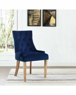 - Design details: Update your dining room decor with Pose. Designed with a charming modern farmhouse aesthetic, Pose features elegant tufting, exquisite nailhead trim, padded seat and back with soft, stain-resistant velvet polyester upholstery, and a decorative metal ring on the chair back for a delightful finishing touch. Supported by solid natural wood legs with flared back legs and non-marking foot caps, Pose is a distinctive dining chair perfect for the modern home.