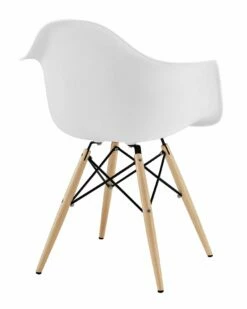 - Design details: Wood Pyramid Armchairs are crafted out of molded plastic for the seat and a solid wood “pyramid” base. Comfortable and versatile, this chair can be used to decorate any space.