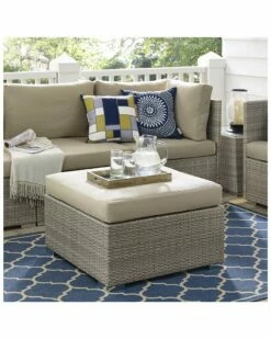 - Design details: Enjoy the outdoors while benefiting from style and comfort. Repose offers a detailed tan and gray synthetic rattan weave with UV protection for eye-catching appeal and durability, plush 4 thick all-weather cushion using industry-leading Sunbrella fabric, non-marking foot pads, and a sturdy powder-coated aluminum frame that supports up to 331 pounds. Subtle style defines the Repose outdoor sectional collection making it a natural choice for enhancing your patio, backyard, or poolside gatherings. This versatile ottoman can be used either as a footrest or as an additional seating surface.