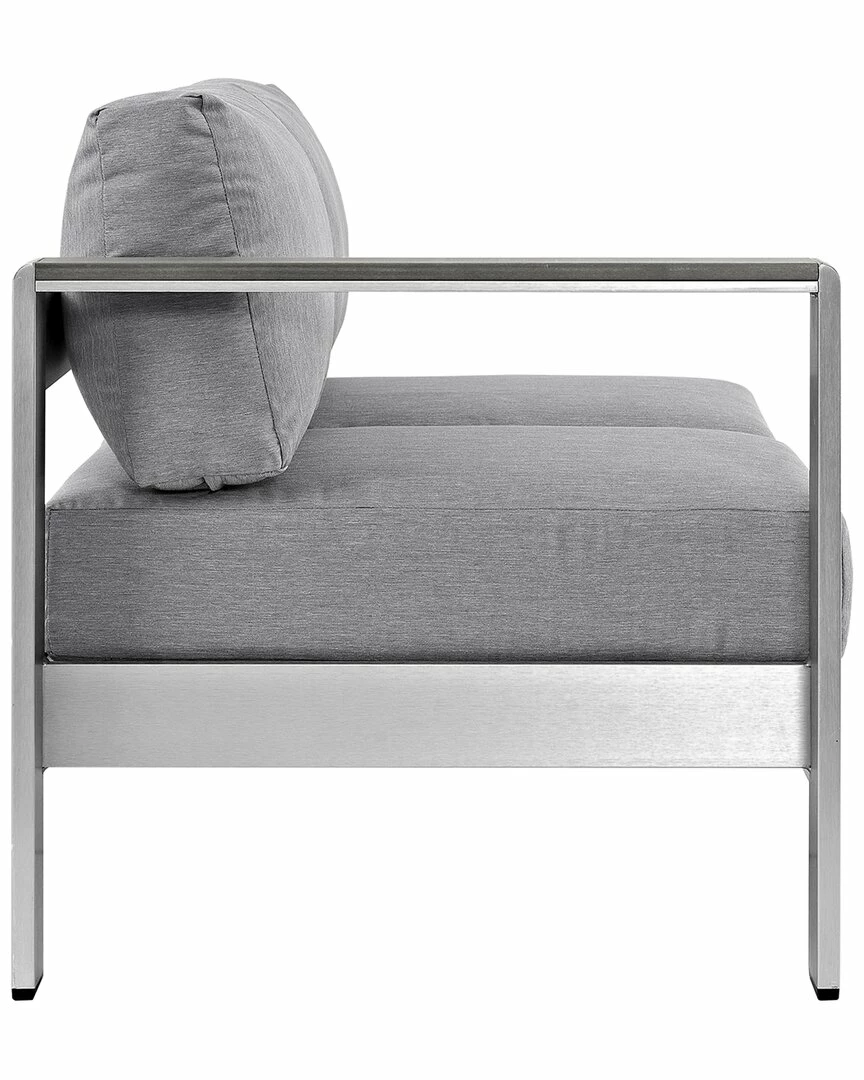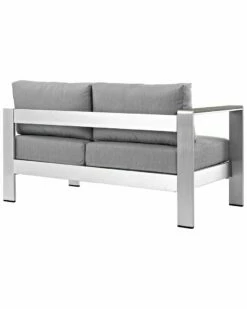 - Design details: Enjoy your patio or backyard leisure time with the strong and durable Shore Outdoor Aluminum Left-Arm Loveseat. Made with an anodized brushed aluminum frame and non-marking black plastic foot caps, Shore comes outfitted with resilient fabric canvas tested to last through all weather conditions. The Shore Outdoor Aluminum Left-Arm Loveseat complements your casual gatherings with a look and functionality you can rely on.