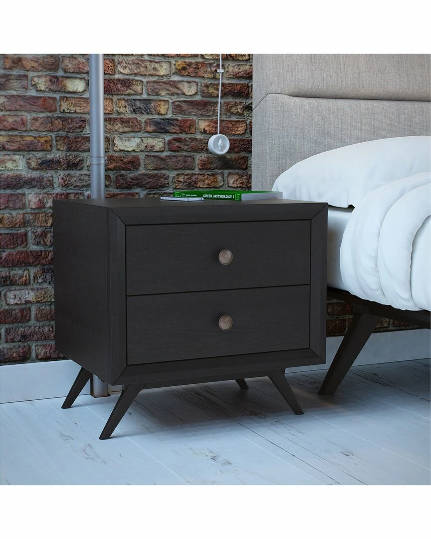 - Design details: A vintage look and rich mid-century design adorn the Tracy bedroom nightstand. This finely crafted toffee brown stained piece comes with two easy-glide drawers, antique finish metal handles, and outstretched platform legs. Built upon solid edging and craftsmanship techniques, the Tracy nightstand requires assembly and wipes clean with a dry cloth.