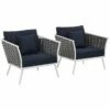 - Design details: Refresh your outdoor decor with the Upland Teak Outdoor Collection. Boldly designed with eye-catching appeal, Upland is made of solid teak wood with all-weather white cushions and solidly build construction. The perfect choice for balconies, backyards, patios, gazebos, poolside or garden spaces, choose from matching armchair, loveseat, ottoman, side table, coffee table, and chaise lounge selections with this multi-purpose modern teak set. Known for its ability to withstand extreme weather conditions, teak is the wood selection of choice for long-lasting outdoor furnishings. Assembly required.
